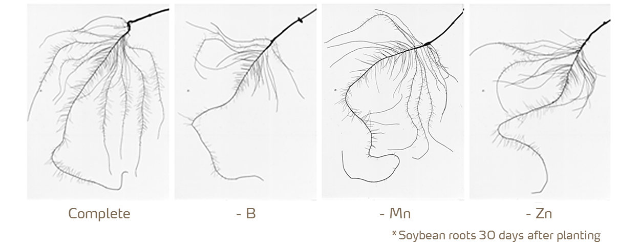 Boron is used throughout the growing season by the plant. As you can see in picture above, the boron is needed early on in root growth. It works in conjunction with zinc in establishing a solid root structure that has the capabilities to search out other nutrients and water.
