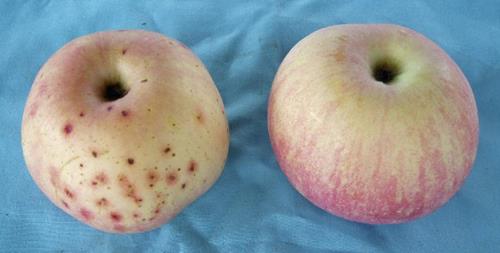 May be confused with boron deficiency. But boron deficiency causes symptoms in early state of fruit development, while calcium deficiency gives symptoms a few weeks before harvesting or in store.