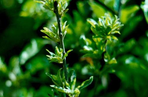Typical symptoms of zinc deficiency are "little leaf" and "rosetting", caused by short internodes.
