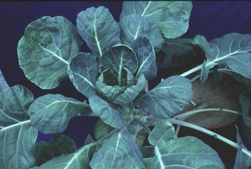 Interveinal fields of  medium leaves brighten whereas most veins remain green.