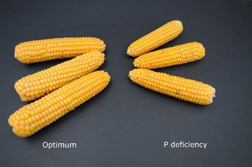 Phosphorus deficiency on cob (right)