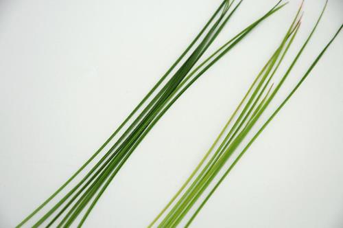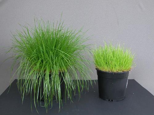 The complete plant shows an even, yellowgreen chlorosis. Leaf tips are coloured light brown to whitish and partly break off, giving the plant a stubby appearance.