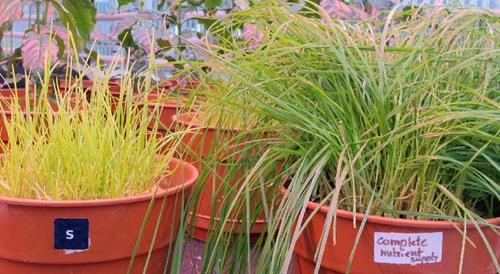Symptoms of sulphur deficiency are similar to nitrogen deficiency, but occur on young leaves first.