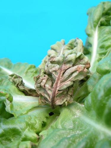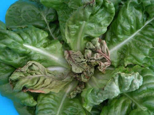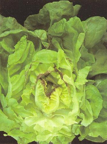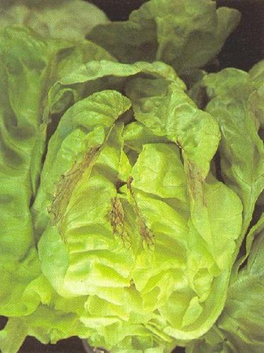 With calcium deficiency growth of lettuce is reduced and leaves are more wavy than normal.