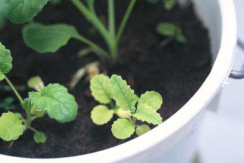Severe iron deficiency in early development stages results in dwarfed growth and interveinal chlorosis up to allover yellowing.