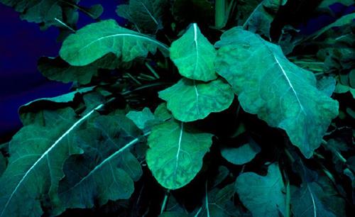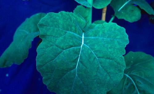 Mn deficiency occurs initially on the younger leaves. Chlorosis develops between the veins, while a narrow area on each side of the veins remains green. As the small veins remain green as well, a mosaic-shaped pattern appears.