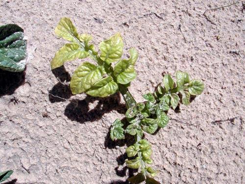 Young plants can show deficiency symptoms if seed potatoes were grown on soils with low Mo content.