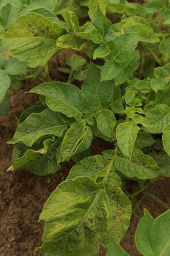 In potatoes, zinc deficiency symptoms are variable. Generally the leaves are smaller and the plants are stunted in growth.