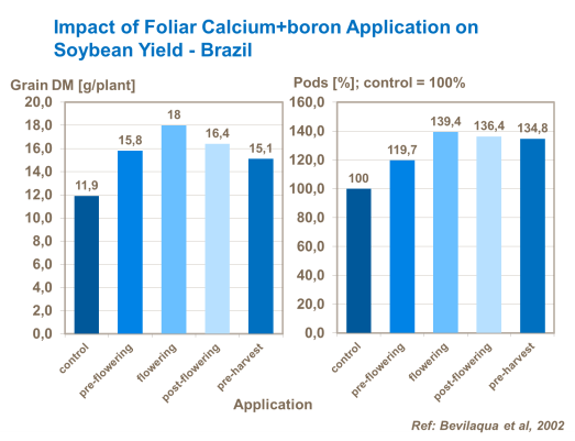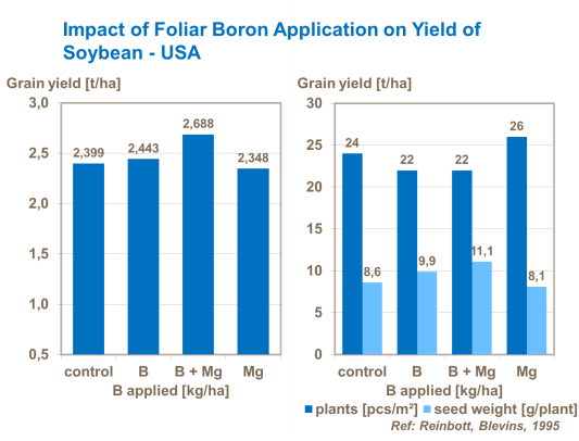 Le bore est important dans la croissance du tube pollinique et dans la germination du grain de pollen. Par conséquent, sa carence mène à une faible formation de fleurs et à des malformations de graines de soja.